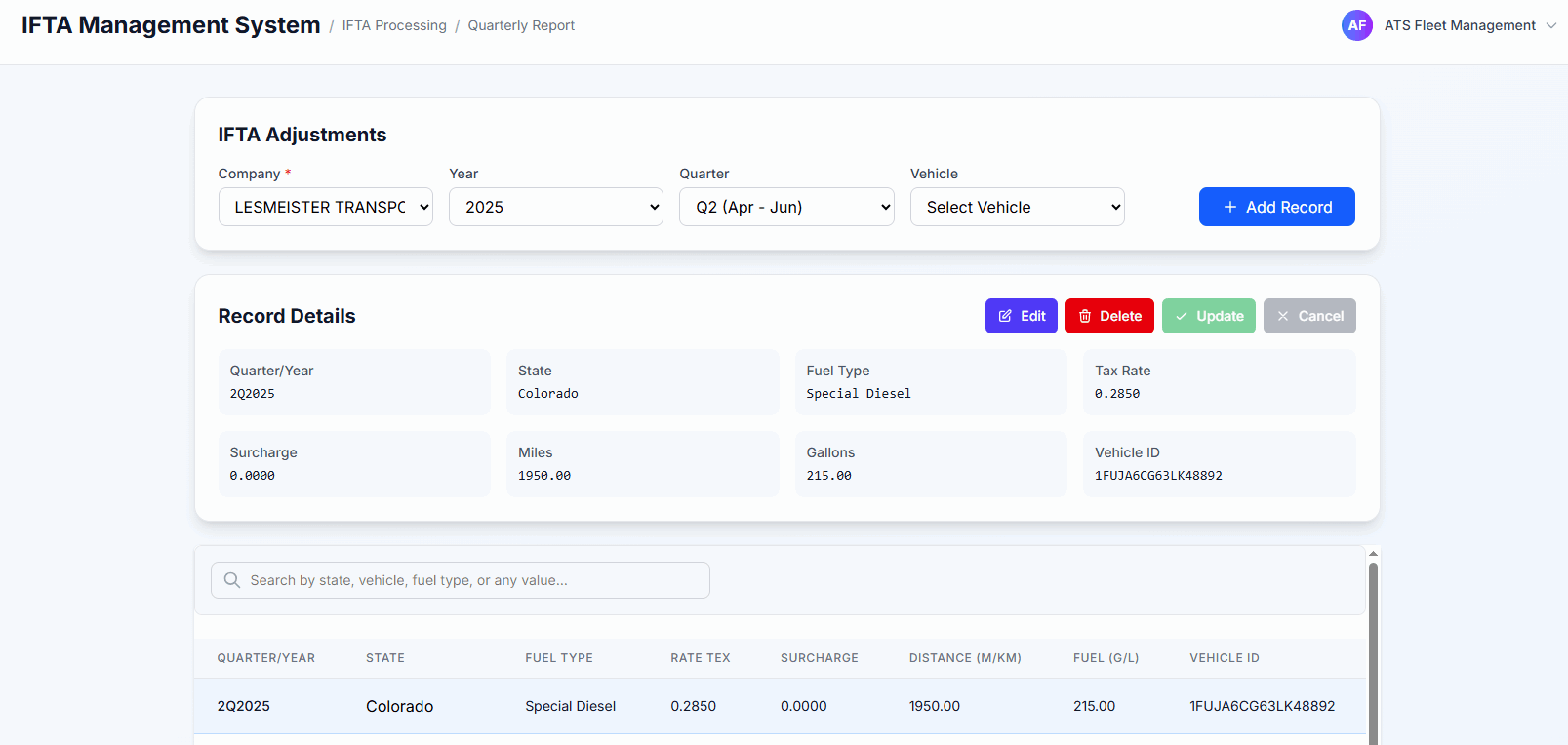 IFTA Adjustment and Mileage Calculator features lets you easily adjust mileage and fuel purchases ensuring all quarterly reporting detail is accurate!